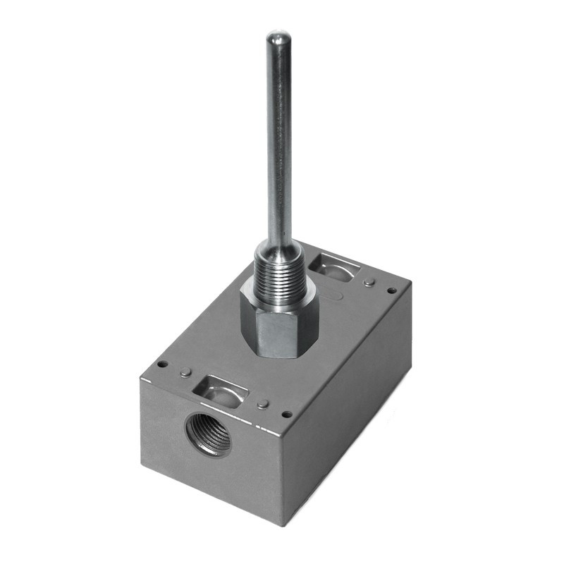 The metal bell box (BB) configuration has a NEMA 3R rating and is designed for wet environments. This unit also includes a two-piece 304 stainless steel thermowell which has male 1/2 inch NPT threads. The wells are milled to tight tolerances so there is maximum temperature transfer and this eliminates the need for thermal grease.